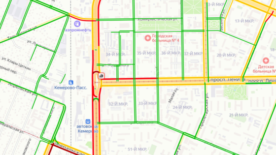 Горожане разместили в "Яндекс.Пробках" информацию о ДТП, произошедшем на пересечении проспектов Кузнецкого и Ленина. По информации свидетеля, опубликованной в 12:14, авария произошла при повороте.