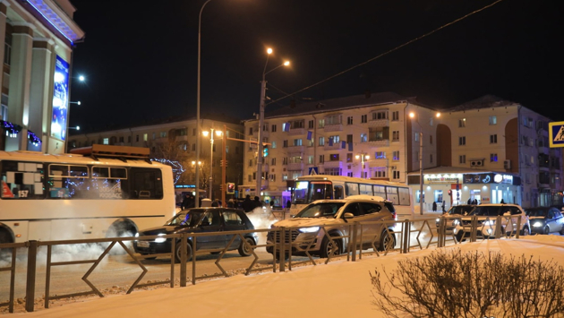 Фотографии были сделаны во вторник. 22 декабря, на трамвайной остановке на перекрестке двух центральных проспектов. На них запечатлена дорожная обстановка: машины стят длинными рядами как по направлению к Кузнецкому мосту, так и в другую сторону.