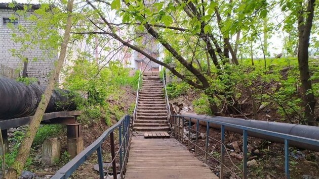 Еще в мае в ОНФ обратились жители микрорайона Зональный г. Кирова, которые пожаловались на опасное состояние пешеходного моста через малую реку Хлыновку вблизи дома по улице Хлыновской, 26. Рядом со входом на мост образовалась глубокая яма в земле и обвалилась часть ступени. Перила моста в нескольких местах сломались и торчали в виде острых штырей. Бетонные ступени разрушились, а в деревянном настиле образовались дыры. При этом ежедневно по опасному мостику ходят сотни местных жителей, в том числе дети.