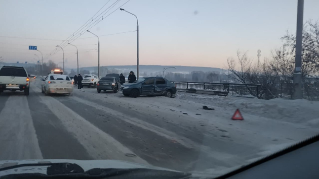 Легковушки столкнулись на мосту через Томь в Кемерове
