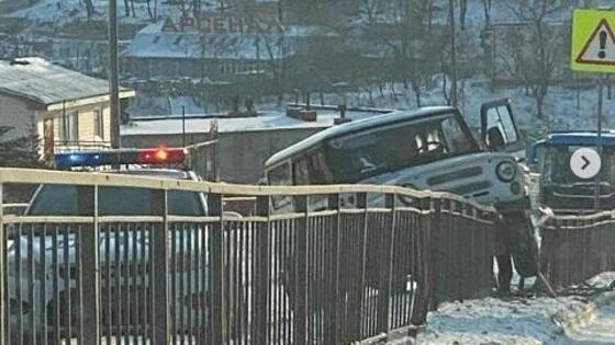 На улице Героев-Тихоокеанцев внедорожник занесло на леера.