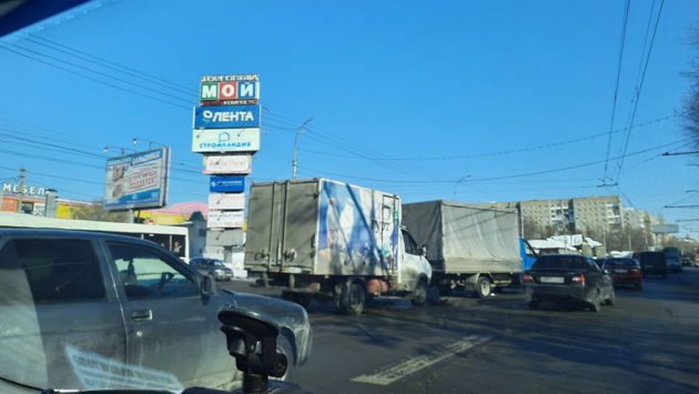 Машины перегородили полосу движения, и в настоящее время на улице в обе стороны образовалась пробка.