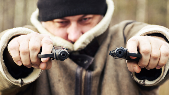 На кадрах видно, как двое людей переходят дорогу в разрешенном месте. Микроавтобус пропускает впереди идущую женщину и проезжает. Следовавший за ним автомобиль не тормозит перед переходом и наезжает на следующего пешехода. Человек скатывается по капоту в сторону, оглядывается на иномарку и продолжает свой путь. Автомобилист проезжает несколько метров, паркуется, выходит из салона и устраивает стрельбу в сторону россиянина.