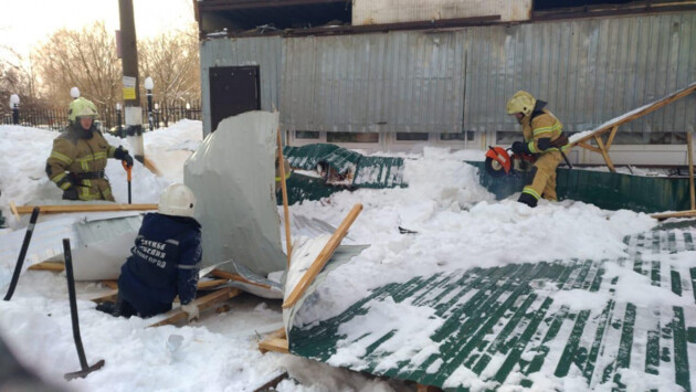 Из-за столкновения конструкция обрушилась и насмерть придавила женщину. Под завалами оказались еще два человека. Известно, что их смогли вытащить.