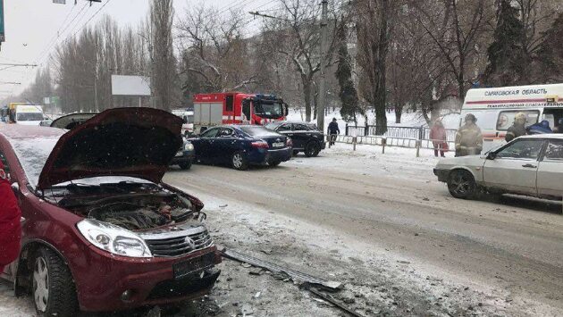 Сразу три иномарки столкнулись на проспекте 50 лет Октября в Саратове