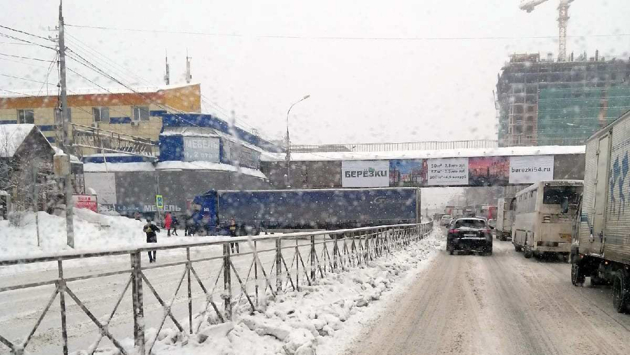 Застрявшая фура заблокировала движение в сторону центра Новосибирска