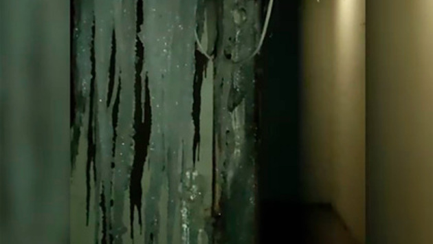 «Отели стоят без воды, а на черновой лестнице оплот Снежной Королевы», — пожаловались каналу россияне. Они показали Readovka, что часть подъезда покрыта льдом, а в отдельных местах сквозь плиты пробивается вода, которая затапливает подъезд.