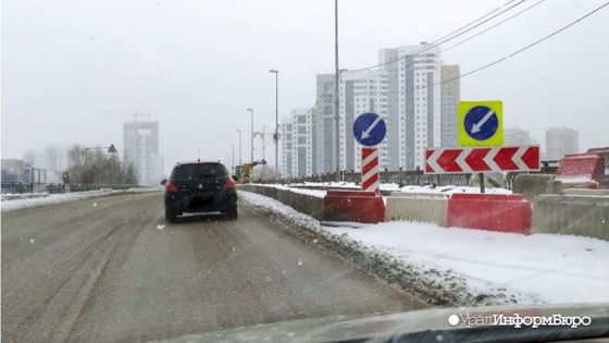 Ждем пробок: мост на Блюхера в Екатеринбурге сузили до одной полосы