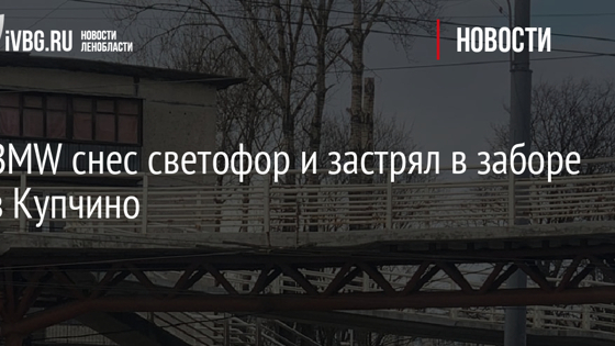 BMW снес светофор и застрял в заборе в Купчино
