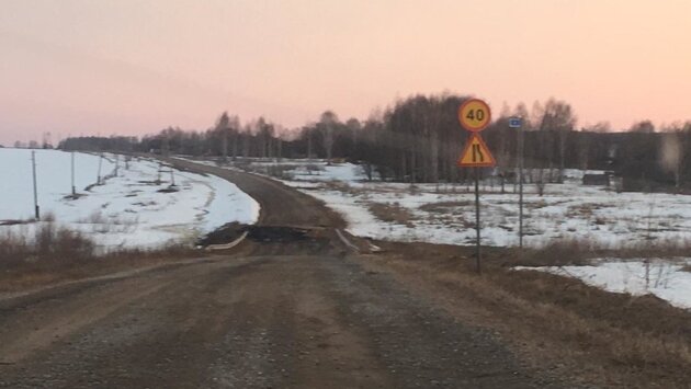 К концу дня опасный участок был отсыпан щебнем, а движение по дороге открыто по одной полосе.