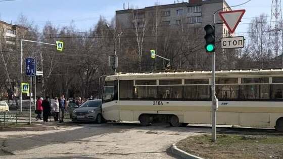 Трамвай протаранил «Ладу» в Новосибирске и спровоцировал затор