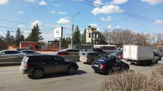 Мост перекинут над одной из основных городских магистралей Новосибирска.