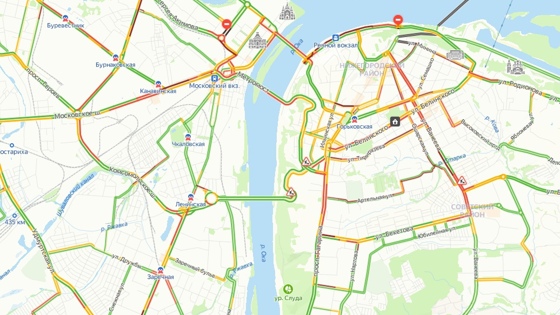 Затруднено движение по Московскому и Сормовскому шоссе, улицам Бурнаковской, Белинского, Артельной, Ванеева, Минина, Ошарской и Сергея Акимова, проспектам Ленина и Гагарина, Канавинскому мосту и подъезду к Мызинскому мосту, а также на площадях Сенной и Свободы и на Нижне-Волжской набережной.