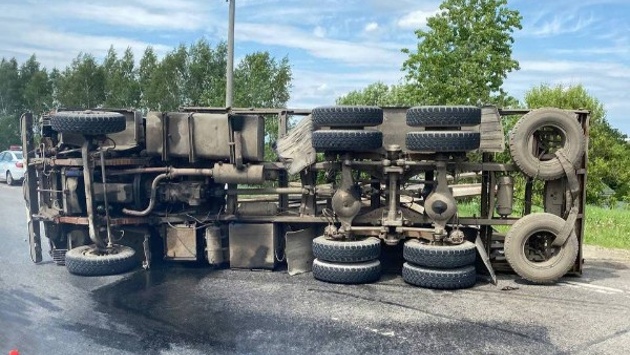 Фура опрокинулась около ТРЦ «Мега» в Нижнем Новгороде