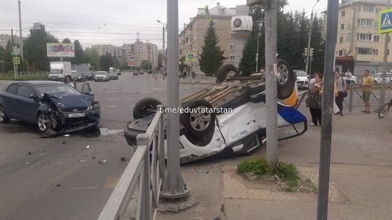 Соцсети: в Казани произошло ДТП — один автомобиль перевернулся