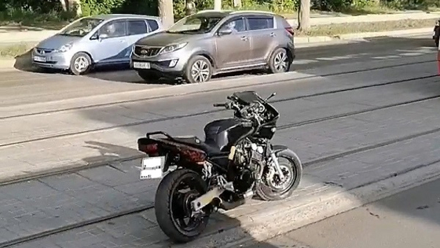Байкер врезался в трамвай и сбежал, бросив мотоцикл