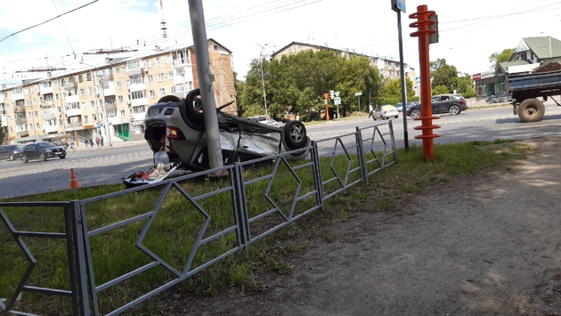 Легковушка перевернулась в результате ДТП на перекрестке в Кемерове