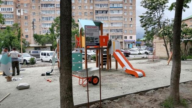 В 27 дворах подготавливают основание под асфальт и асфальтируют территории. Еще в шести - устанавливают детские площадки, а на двух - монтируют спортивные комплексы.