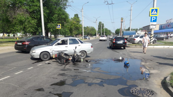 В Балакове «десятка» подрезала пожилого скутериста. Его спас шлем