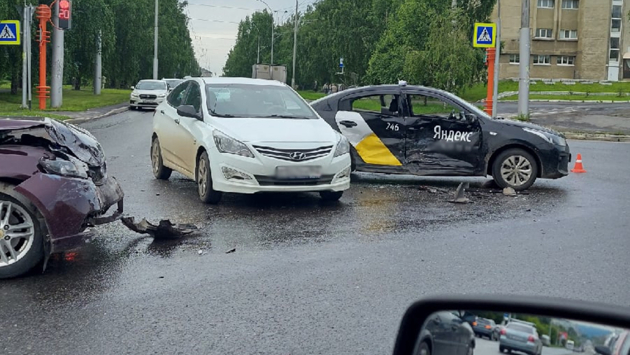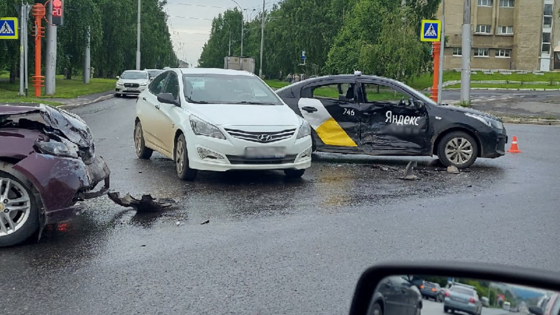 Утром в понедельник, 28 июня, в Кемерове на пересечении улицы Волгоградской и проспекта Октябрьского столкнулись три легковушки, в том числе такси известного интернет-гиганта. Очевидцы поделились кадрами в соцсетях.