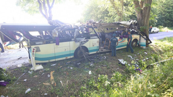Одна из пассажирок рассказала, что какая-то машина пошла на обгон и выехала на встречную полосу, из-за чего водитель автобуса "резко свернул в дерево", пытаясь уйти от столкновения.