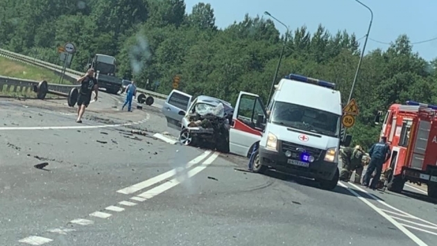 ДТП произошло на 386-м км федеральной дороги А-114 Вологда - Тихвин - автомобильная дорога Р-21 "Кола". На месте работают сотрудники обслуживающей дорогу подрядной организации, скорая помощь и МЧС.