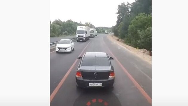 Заснявший легковушку "Опель" водитель грузовика сообщил, что тот обиделся на других водителей из-за что они не пустили его, когда он хотел объехать пробку по обочине. Тогда он выбился вперед и стал ехать очень медленно.