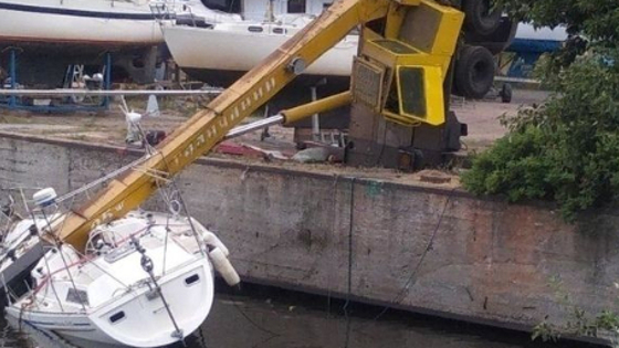 Вчера, 18 июля, в сообществе «ДТП и ЧП Санкт-Петербург» в социальной сети «ВКонтакте» была опубликована фотография крана, упавшего при спуске на воду на небольшую яхту. Инцидент произошел в Кронштадте.