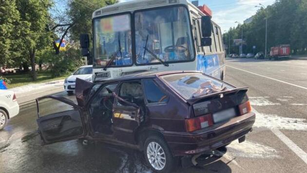 В Кемерове полная маршрутка столкнулась с легковушкой