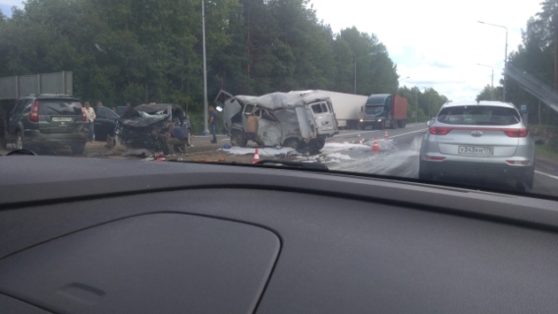 В результате столкновения трёх автомобилей на трассе в Ленобласти погиб человек