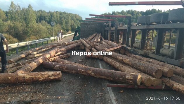 Смертельное ДТП в Мурашинском районе: на трассе опрокинулся лесовоз