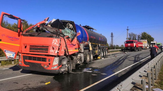 Два грузовика Volvo столкнулись на трассе «Сибирь»