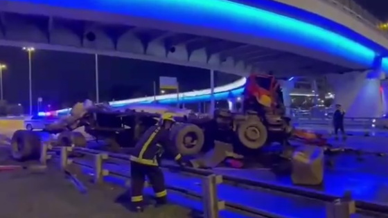 Как сообщается в канале, водитель тяжелого грузовика не справился с управлением и упал с эстакады ТТК на проезжую часть Ленинградского шоссе.