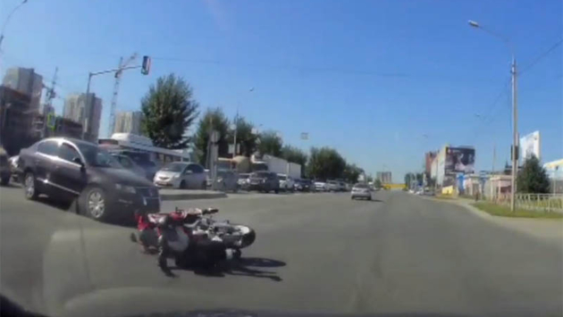 «От удара байкерша оказалась на асфальте, однако самостоятельно поднялась и жестами показала, что она расстроена сложившейся ситуацией». – сообщает АСТ-54.