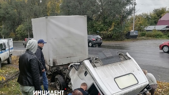 На кемеровском перекрестке столкнулись два грузовика, людям понадобилась медицинская помощь.