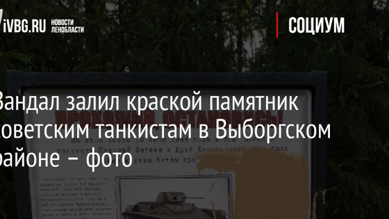 Вандал залил краской памятник советским танкистам в Выборгском районе – фото