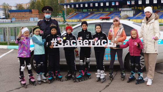 В заключение мероприятия все юные фигуристки, которые являются полноценными участниками дорожного движения получили от полицейских световозвращающие элементы и сделали памятное фото с хэштегом #ЗАСВЕТИСЬ для соцсетей.
