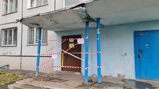 Козырек над подъездом в аварийном состоянии напугал кемеровчан