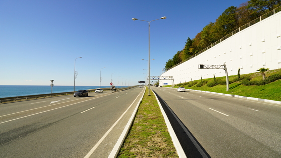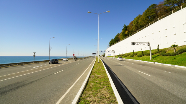 Федеральная автодорога А-147 «Джубга – Сочи» общей протяженностью 217 км проходит по территории Кубани, а после границы с Республикой Абхазия продолжается в направлении Сухуми, Тбилиси и Баку как часть европейского коридора Е97.