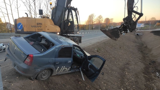Дорожный инцидент произошел накануне около 17:05 на 7 км автодороги Вологда - Медвежьегорск. Здесь столкнулись автомобили «Рено Логан» (с логотипом агрегатора такси Uber), «Рено Флюенс» и экскаватор «Вольво».