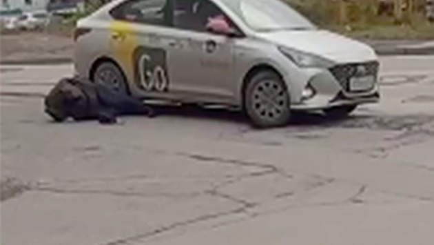 На видео виден лежащий на проезжей части человек. По нему задним колесом проезжает машина и скрывается. Свидетели утверждают, что на дорогу мужчину выкинули из такси Hyundai серебристого цвета.