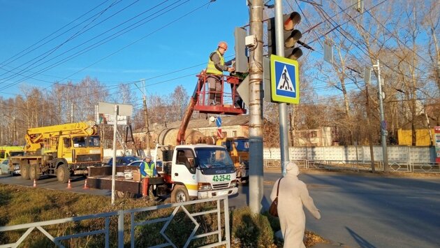 В Кирове завершается модернизация светофорных объектов на семи перекрестках. Вчера подрядчик приступил к замене электронных регулировщиков на ул. Щорса – ул. Производственная.