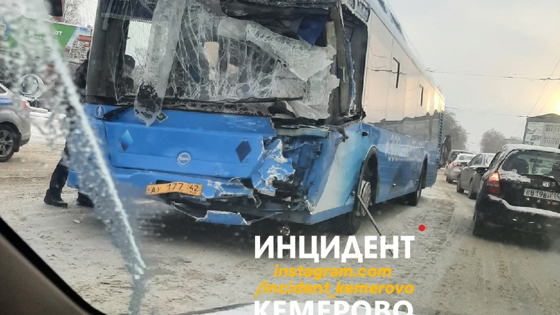 Автобус лишился лобового стекла во время ДТП в Кемерове