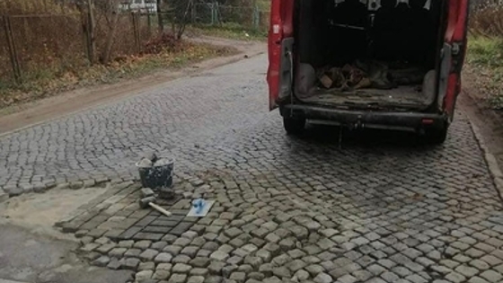 Калининградец самостоятельно починил дорогу из кёнигсбергской брусчатки