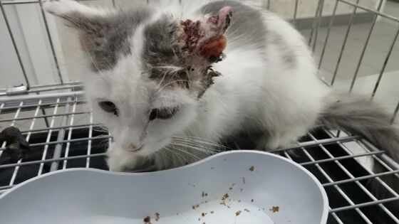 Костромичи спасли от страшной смерти котенка с рваными ушами