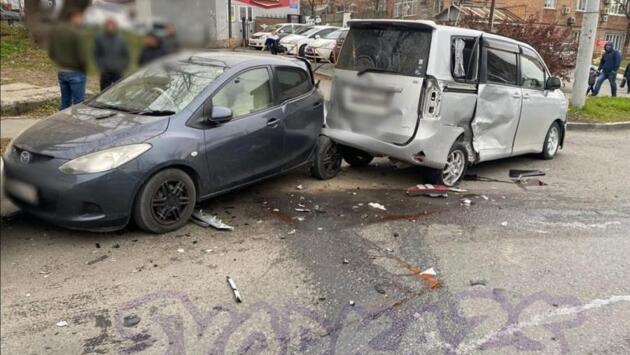 Утверждается, что управлявший иномаркой гражданин поворачивал налево и не пропустил Chevrolet. Автомобиль влетел в припаркованную Mazda Demio, пострадала и находившаяся рядом Toyota Axio.