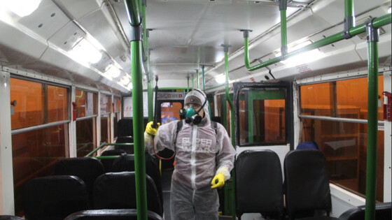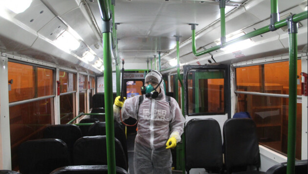 В пример приводится обработка салонов Горэлектротранспортом. Два раза в неделю берутся контрольные смывы с поручней, которые проверяются на наличие бактерий и вирусов в лаборатории. На данный момент не допущено ни одного нарушения.