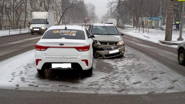 Первое ДТП с пострадавшим водителем произошло 22 ноября в 7:40 на пр. Победы, 97. Здесь столкнулись «Рено Логан» и «Киа Рио».