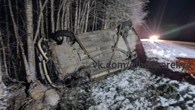 В Муезерском районе перевернулся автомобиль под управлением женщины-водителя