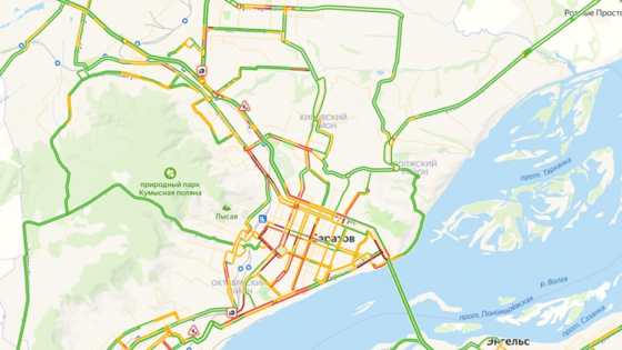 Наиболее серьезные пробки наблюдаются на проспекте 50 лет Октября, Тракторной, Чернышевского и Большой Горной по направлению к мосту Саратов-Энгельс, Большой Садовой.